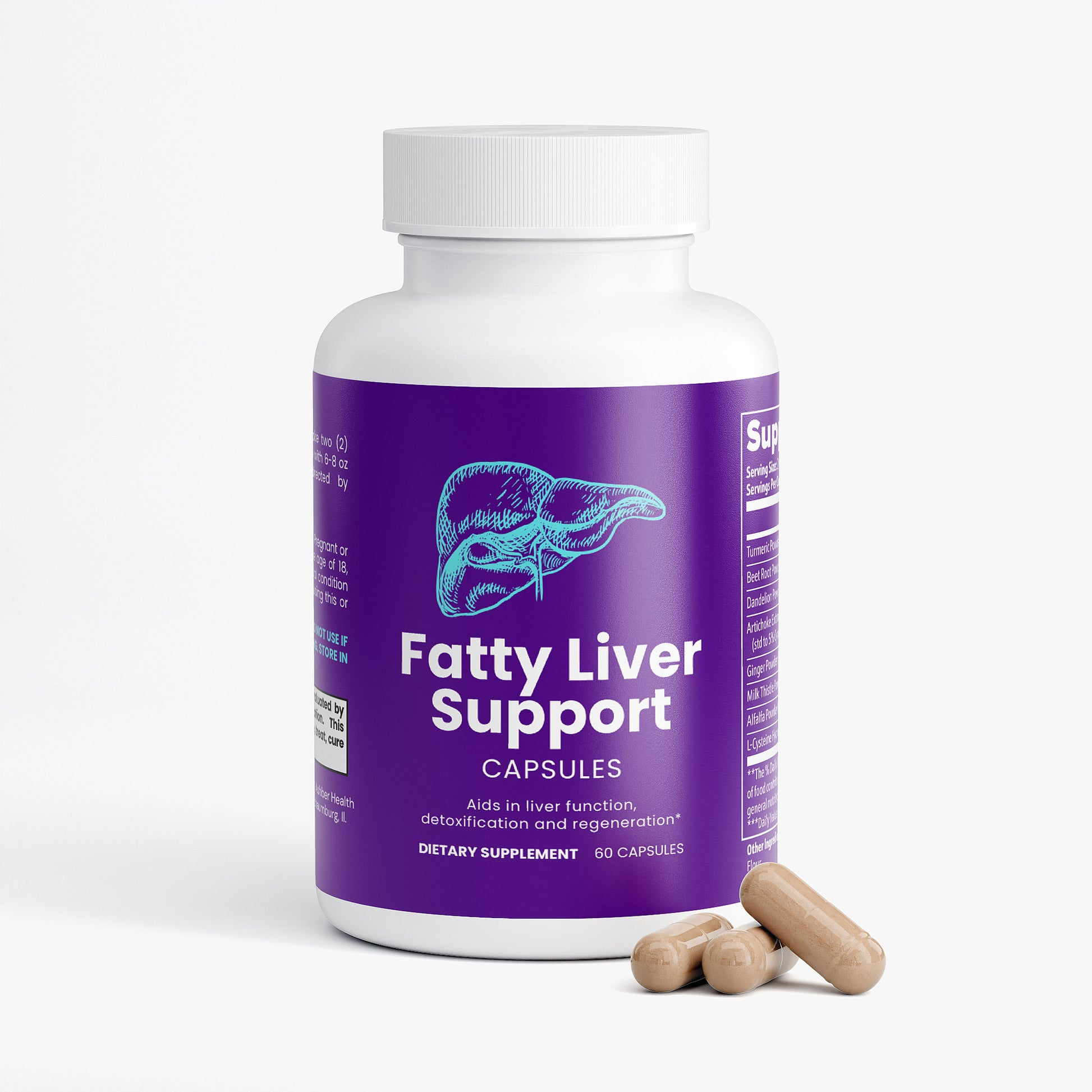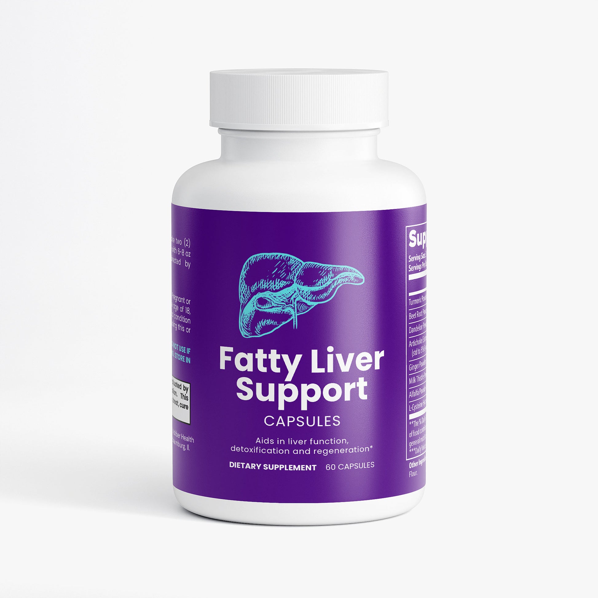 This Fatty Liver Support supplement is crafted in the USA to aid in enhancing liver function, supporting detoxification and regeneration, and promoting overall health. It contains natural ingredients like Turmeric, beetroot, and Milk Thistle, aimed at bolstering the liver's health. Designed for daily use, this supplement supports the body's natural detoxification processes, ensuring a comprehensive approach to maintaining liver wellness without the use of artificial additives.*